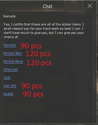We hand in the first 2 quests for varnish and suede, we upgrade the armor to lvl 3. The next 4 quests for iron ore, we upgrade jewelry to lvl 3. If you decide to play with a shield, then forget about it for now, then resources will be farmed for it by the hose.