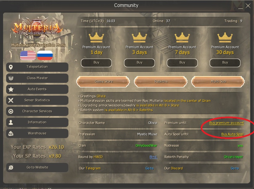 In the process of earning gold, the very first thing we do is buy autospoil for gold. To begin with, for 1 day for 80 gold, then we buy a Premium account. Only then we collect for a shirt or increase the number of days for PA and autospoil.
